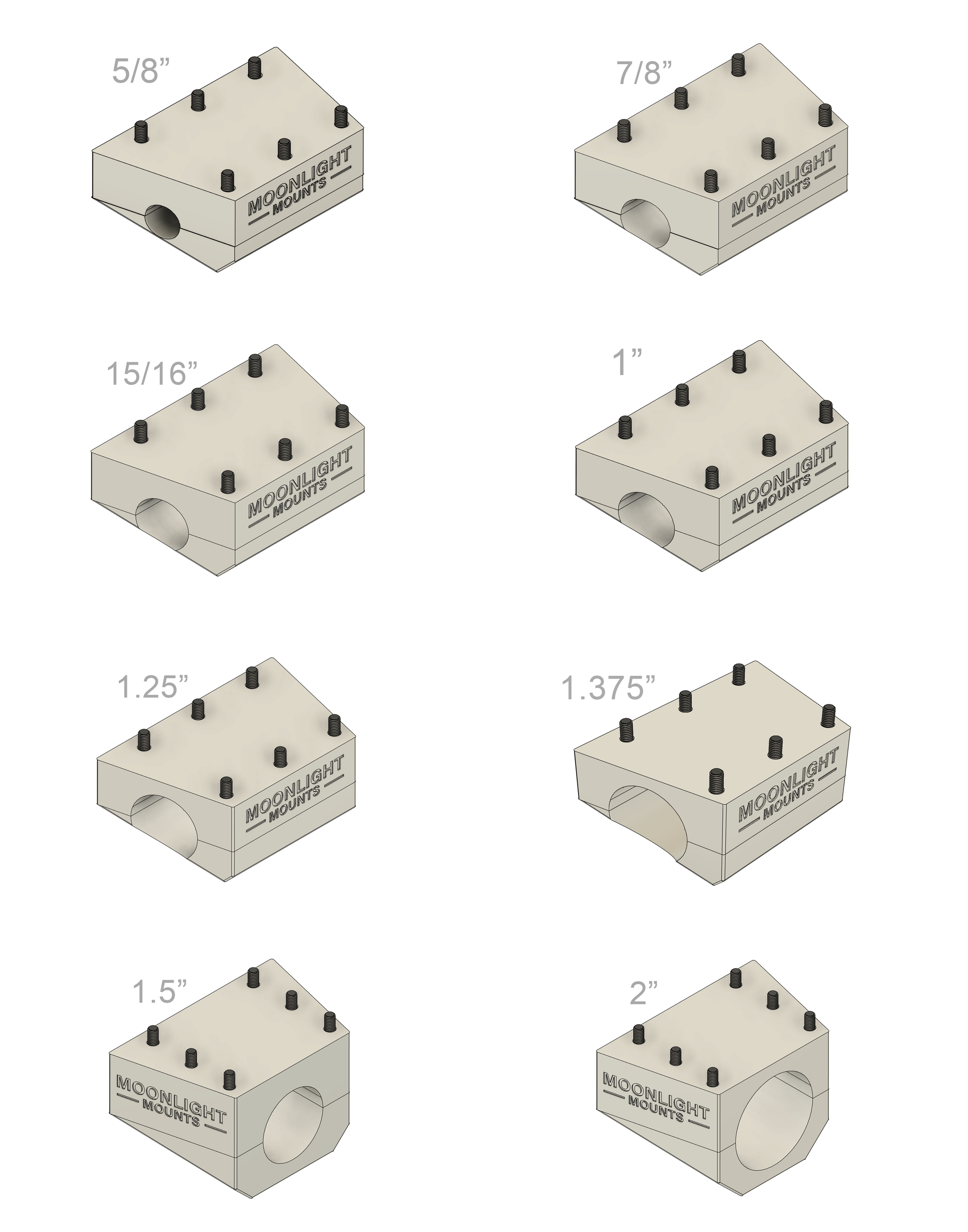 Available Pole Bracket Sizes: 5/8", 7/8", 15/16", 1", 1.25", 1.375", 1.5", and 2" diameter